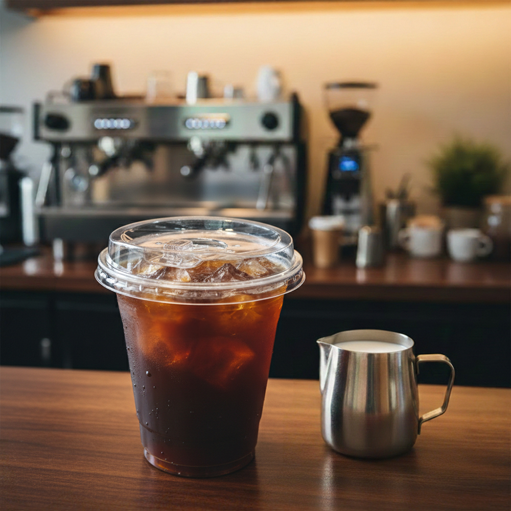 カップには、「衛生的な再生PET樹脂を中間層に配合したカップです。と印刷されており、お客様への環境意識のアピールに効果的です。