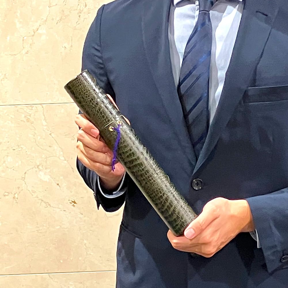 賞状証書入れにワニ柄丸筒 紐付き 30㎝サイズ
