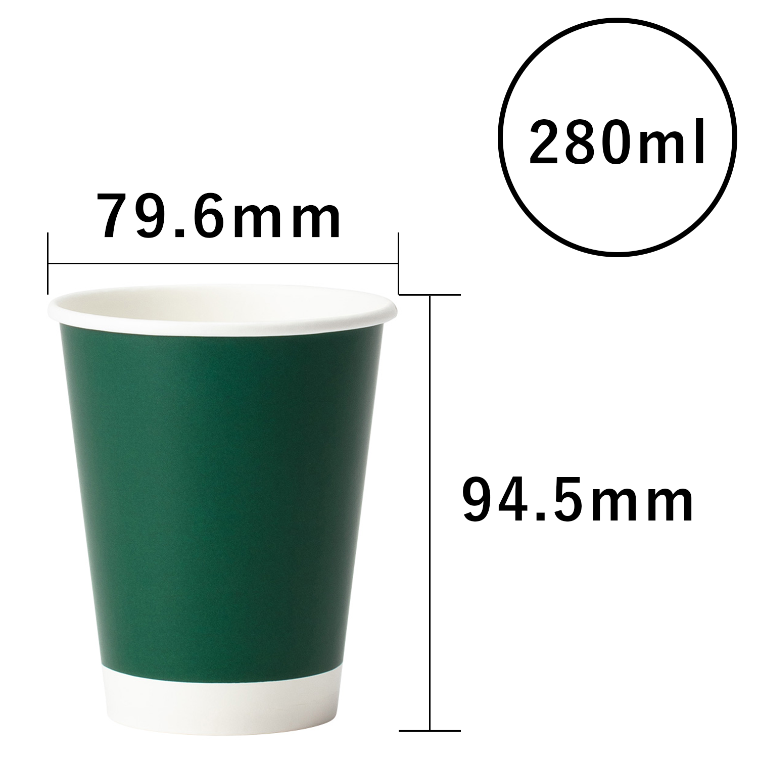蓋付き厚紙カップ ダークグリーン 280ml 9oz 100組