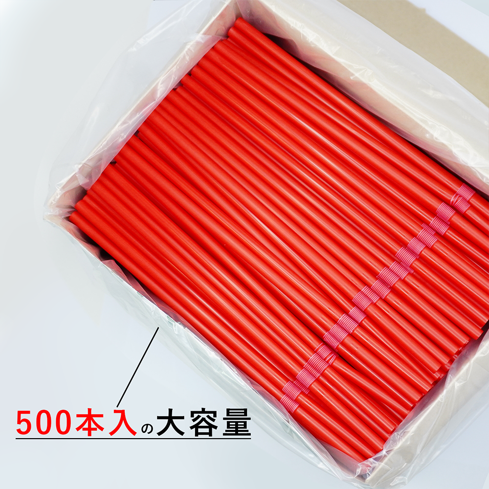 フレックスストロー 赤 6mm×21cm 1箱 裸 500本