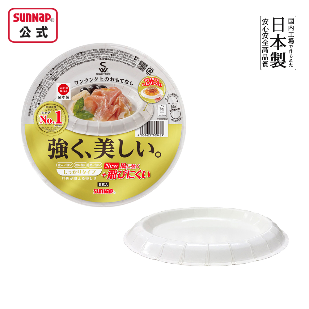 簡易食器メーカーサンナップの紙皿がそろっております。 日本製のサンナップ基幹ブランド「サンナップホワイト」の紙皿に、デザインされたペーパープレート。サトウキビの搾りかすを使ったバガスモールドプレート等、アウトドアからパーティーまで様々なシーンにあった紙皿を100品以上のなかからお選びいただけます。