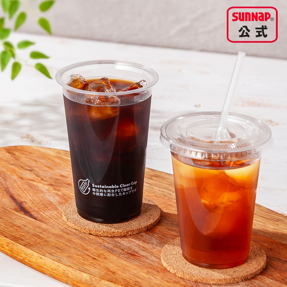 サスティナブルクリアカップは、中間層に使用済みPETボトルを真空。高圧処理したメカニカルリサイクル製法で、品質・強度を低下させることなく再生されたPET樹脂を使用しています。