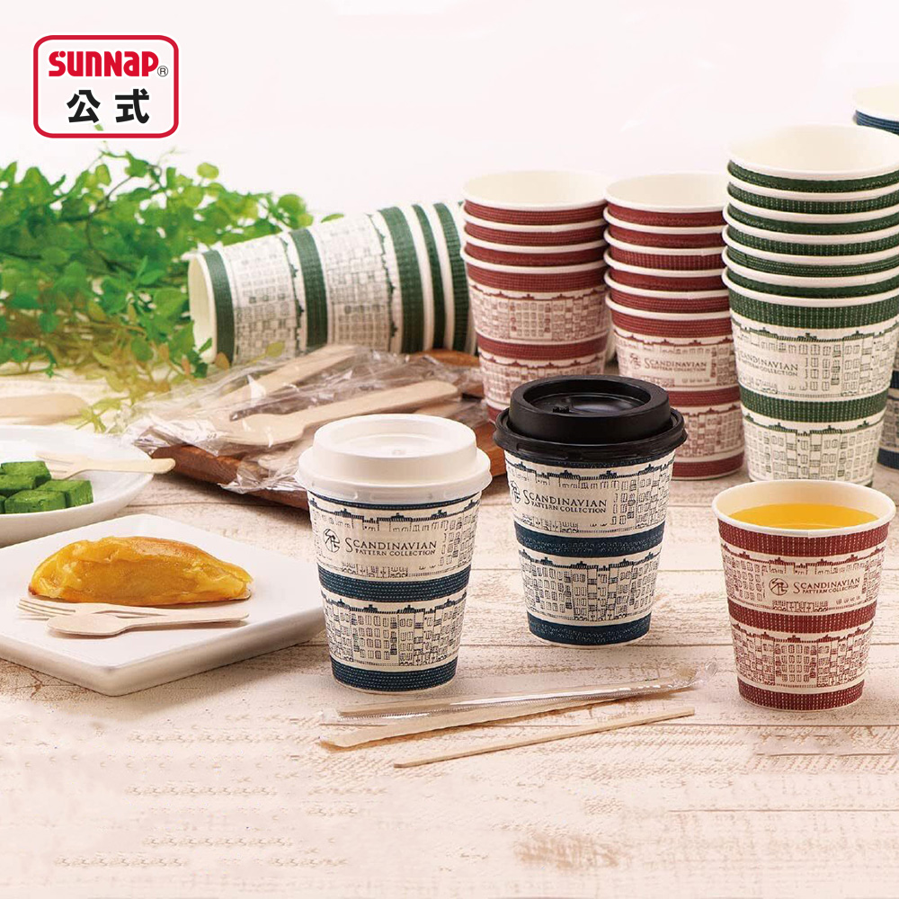 内カップに凹凸紙を巻き付けて空気層をつくり、外面に熱を伝えにくく手に持って熱さを感じにくい紙コップです。