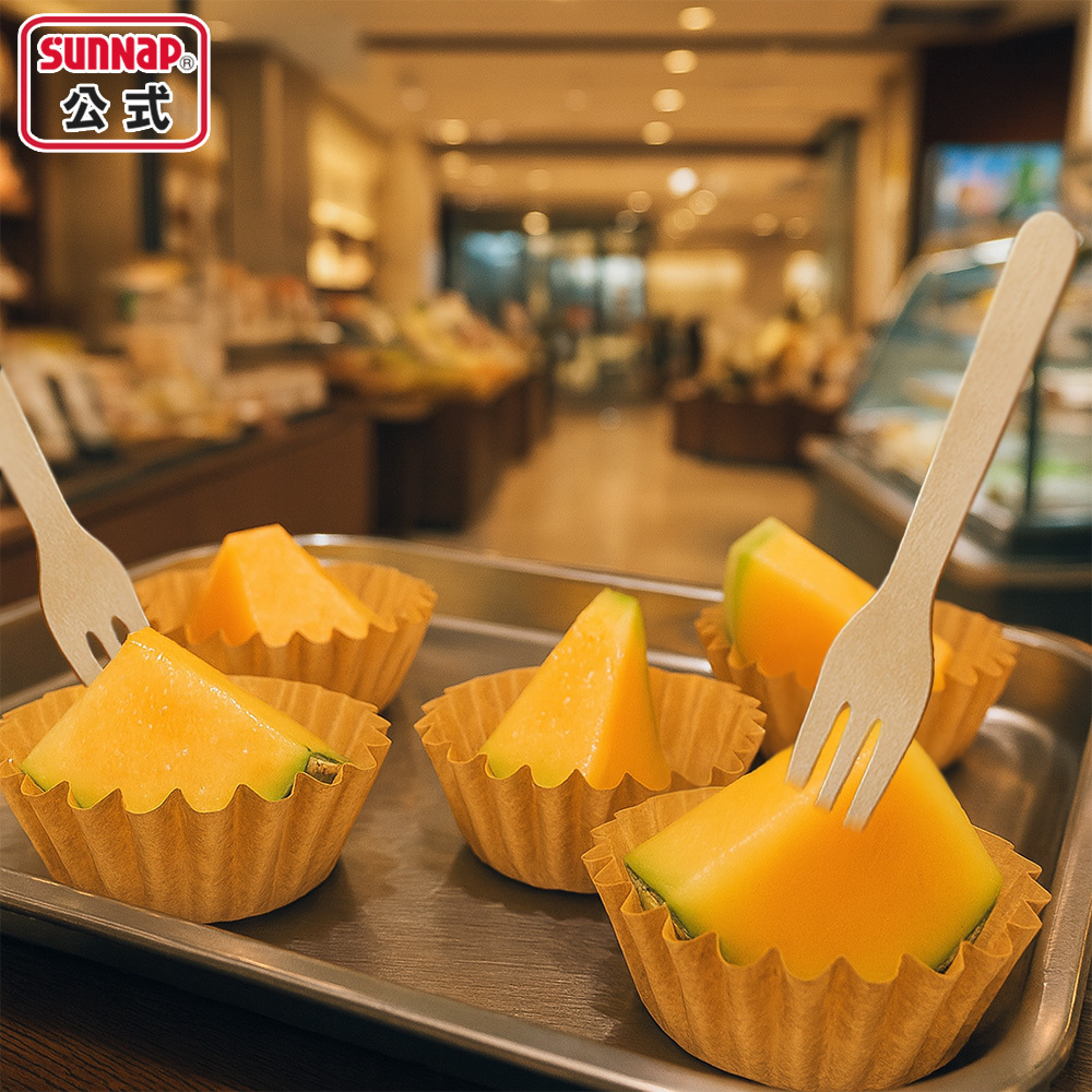 小ぶりで使いやすい、ちょっとしたおつまみや試食に適した木製デザートフォーク。