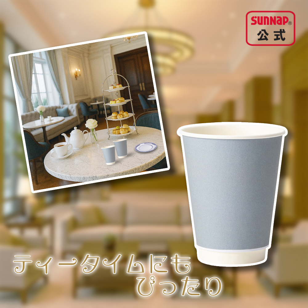 cuplid 蓋セット エアウォール ブルーグレー 蓋黒 340ml 12oz 100組
