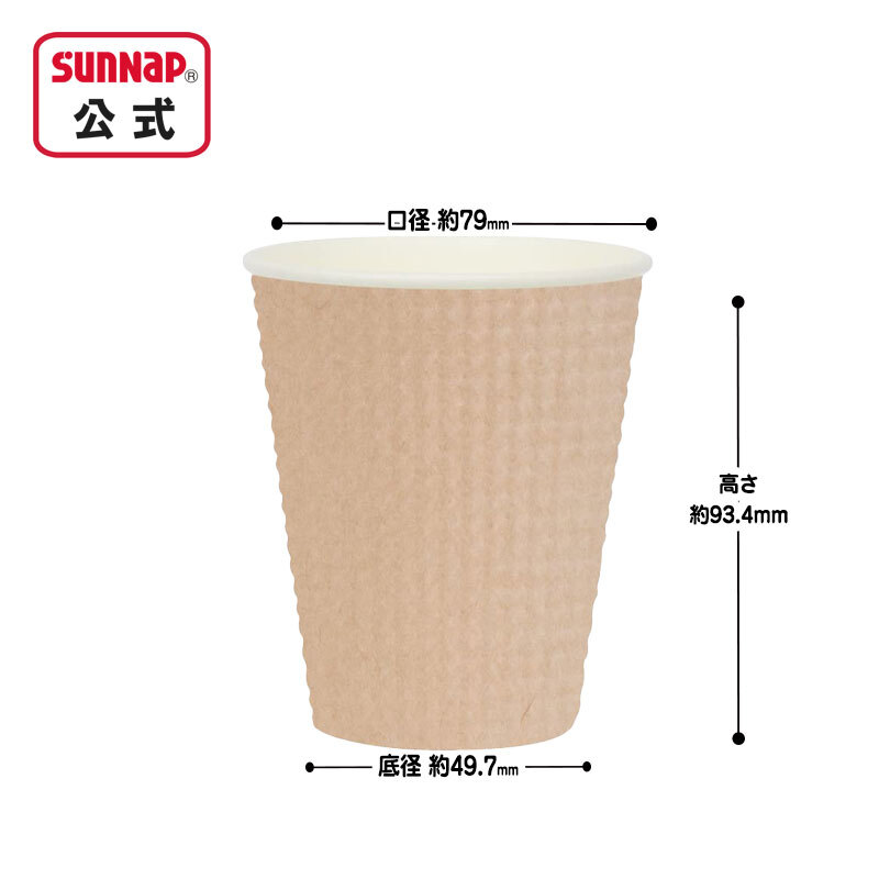 内カップに凹凸紙を巻き付けて空気層をつくり、外面に熱を伝えにくく手に持って熱さを感じにくい紙コップです。