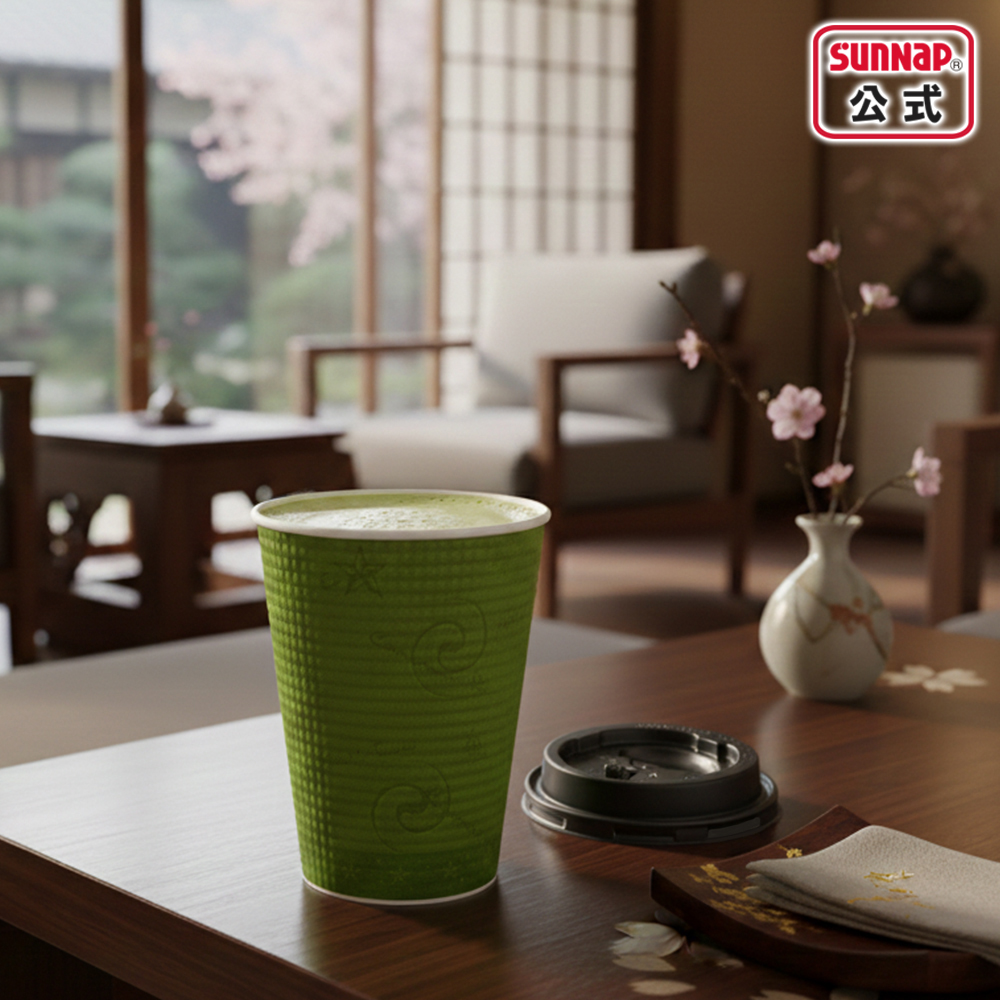 内カップに凹凸紙を巻き付けて空気層をつくり、外面に熱を伝えにくく手に持って熱さを感じにくい紙コップです。