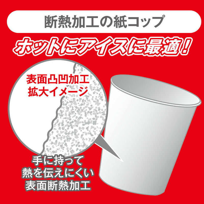 【二重構造の断熱性】表面の発泡加工により、手に持って熱くなりにくい高機能カップです。